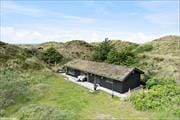 Med sit grønne græstag smelter sommerhuset næsten helt sammen med omgivelserne, hvilket bare er med til at understrege fornemmelsen af, at man lever i pagt med naturen her på adressen. Inden døre kan I se lige ud på klitternes varierede bevoksning, så selv når I hygger jer med brætspil eller drikker kaffe nær stuens brændeovn, har I kontakt til det særlige landskab. Den stemningsfulde stue ligger i åben forbindelse med et veludstyret køkken, og derudover byder planløsningen på et badeværelse og tre gode soveværelser, der alle er med dobbeltseng.