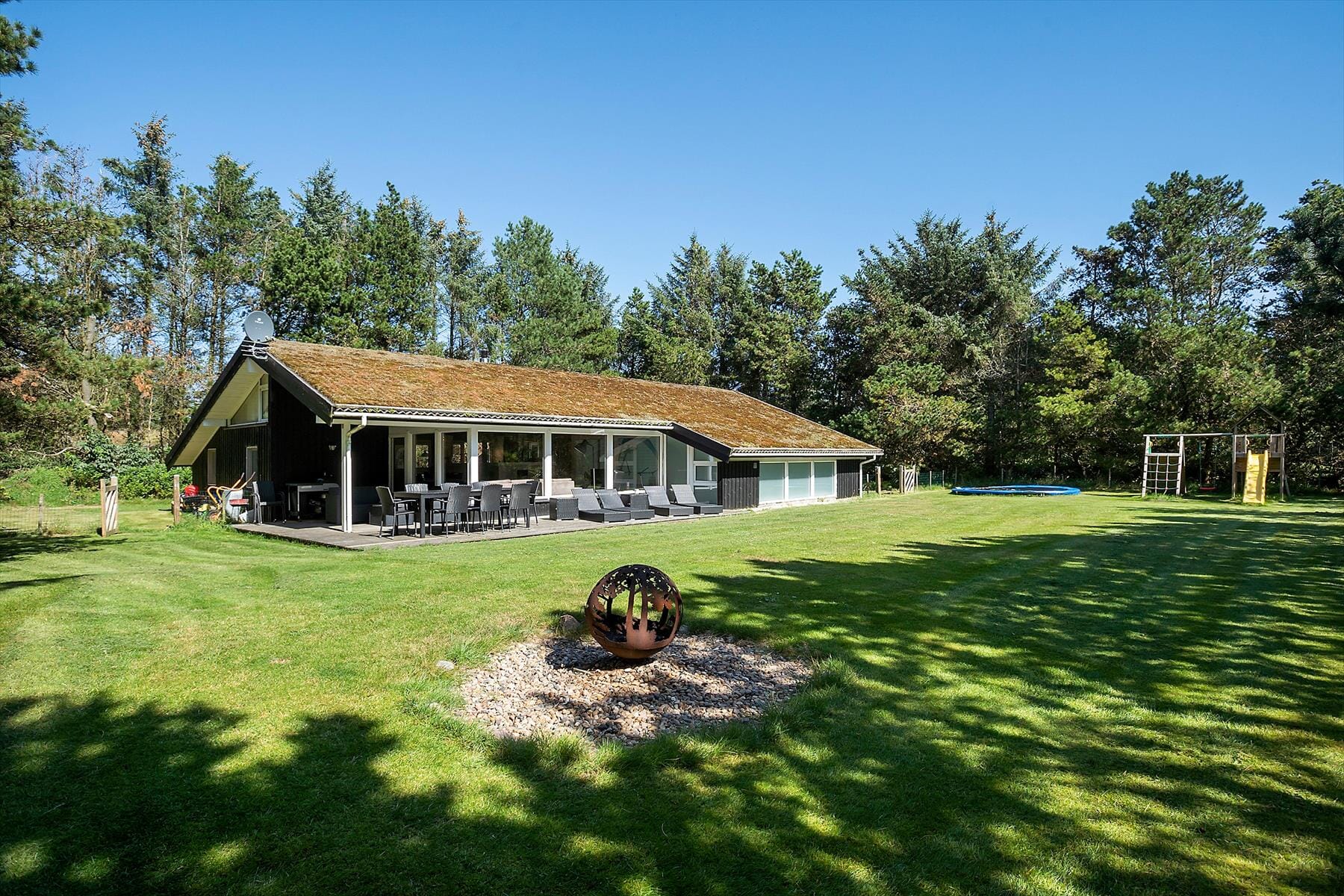 Sommerhuset ligger på en stor og ugeneret grund, der indbyder til både leg og afslapning i det fri. Her er der god plads til børnenes leg og til boldspil på græsset – og hvis du har lyst til lidt ekstra sjov, er der også en trampolin. Den store have giver også mulighed for afslapning og ro i en fredfyldt atmosfære, så du kan nyde ferien i fulde drag. Når vejret tillader det, kan du slappe af på terrassen og få lidt sol, mens du nyder udsigten over den grønne have. Om aftenen kan du samles med familien og grille et lækkert måltid under åben himmel, mens du lader solen gå ned.
