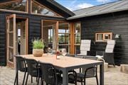 Udenfor finder du en stor terrasse med masser af plads til både afslapning og samvær. Terrassen er omkranset af naturen, og her er der også et shelter, hvor I kan tilbringe hyggelige aftener under stjernerne. Den lukkede gårdhave giver ro til at nyde solen, og her kan du finde ly for vinden, så du kan sidde uforstyrret, også på en blæsende dag. Om aftenen kan du tænde op i grillen og tilberede et festmåltid under åben himmel, mens du nyder den fredfyldte feriefornemmelse.