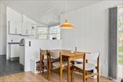 Når du træder indenfor i sommerhuset, mødes du af en lys og indbydende stue med højt til loftet, der skaber en rummelig og luftig atmosfære. Brændeovnen indbyder til hygge på de kolde dage, hvor du kan sidde med en god bog og nyde den knitrende ild. Stuen er det perfekte samlingspunkt for familien, hvad enten I vil spille brætspil, se en film eller bare slappe af og nyde hinandens selskab. Køkkenet er åbent og funktionelt, så madlavningen kan foregå i fællesskab, og der er altid plads til at samles omkring spisebordet til hyggelige måltider. I badeværelset kan du forkæle dig selv med et afslappende spabad og lade kroppens spændinger smelte væk, mens du ser frem til en dag fyldt med ferieoplevelser.