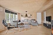 Hele 116 m2 får I at brede jer på inden døre i dette charmerende træsommerhus, der er opført i 1967 og renoveret i 2006. Planløsningen er perfekt afstemt til op til otte feriegæster med sine fire soveværelser og to badeværelser, som endda ligger godt fordelt rundt omkring i sommerhuset. Det sociale samlingspunkt består af et stort opholdsrum, hvor I kan hygge jer med madlavningen i det åbne køkken, slappe af i sofaafdelingen nær TV’et og brændeovnen eller spille brætspil ved spisebordet – der for øvrigt er placeret lige ved de store vinduespartier, der inviteret dagslyset indenfor og giver udsigt til haven.