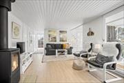 Lækkert, lyst og luftigt - sådan kan huset helt kort karakteriseres. Det er nemlig indrettet på gemmenført vis med hvid som den gennemgående farve, tilsat enkelte diskrete naturfarver og smagfulde sorte detaljer. Værd at fremhæve er desuden husets velfungerende planløsning. Huset hyder på tre gode soverum, et pænt badeværelse og en rummelig stue med integreret køkkenafdeling. Sidstnævnte opholdsrum er et oplagt sted at samles, for eksempel omkring spisebordet til aftensmad eller med et brætspil i nærheden af brændeovnen.