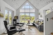 Huset er opført i 2012, og alt står knivskarpt, inde såvel som ude. De store vinduespartier sørger for masser af naturligt lys, og i stuen er der loft til kip og udsigt til have og himmel. I stueplan får I et stort sammenhængende opholdsmiljø med køkken-alrum og stue i åben forbindelse – perfekt til det hyggelige samvær på ferieturen. Lækre kvalitetsmaterialer er med til at understøtte den eksklusive stemning i huset, og som ekstrabonus er der billardrum på førstesalen med pragtfuldt lysindfald. Værelser er der tre af: et i stueplan og to på førstesalen. Hertil kommer to lækre badeværelser og en entré med vaskefaciliteter.