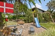 Huset ligger på en 1.521 m2 stor grund med en flot anlagt have, som med garanti vil begejstre både store og små. Græsplænen inviterer til leg og boldspil, og der er desuden et legestativ i haven. Er man ikke til for meget fysisk aktivitet, kan man nyde de fredfyldte omgivelser i ro og mag i en liggestol – der ergode terrasser både ved huset og i bunden af haven, hvor der altid er vindstille. Den ene terrasse er overdækket, så her kan I trække ind i skyggen, når solen bager, eller hygge jer i tørvejr, hvis det skulle dryppe lidt fra oven.