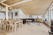 Stor, hyggelig og lys opholdsstue med spiseplads, varmepumpe, brændeovn, udgang til terrassen. Fra stuen er der udsigt til vandet. Der er Bordfodbold.