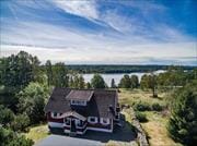 Feriehuset blev bygget i 2017, i skandinavisk stil med lyse træpaneler og indrettet med moderne møbler. Huset byder på to soveværelser, det ene indrettet med dobbeltseng, det andet med en køjeseng. Det lyse, flisebelagte badeværelse er udstyret med bruser, moderne forbrændingstoilet og gulvvarme. Den nydelige dagligstue med brændeovn, højt til loftet og et godt lysindfald, ligger i åbne forbindelser med køkkenet. Køkkenet er udstyret med opvaskemaskine, køleskab med fryser, mikroovn, komfur med glaskeramiske kogeplader og varmluftovn. Vinduerne fra gulv til loft, giver et fantastisk udsyn over søen fra hele opholdsstuen. Fra stuen fører en trappe op til en “hyggekrog” på første sal, hvor man kan nyde udsigten over søen, mens man læser en god bog. I den anden ende af rummet er siddemøbler og fjernsyn. Få meter fra huset ligger et gæstehus, indrettet med køjeseng. Gæstehuset har en udestue med infrarød varmekilde. Både feriehuset og gæstehuset kan opvarmes elektrisk. Der er havemøbler, grill, bålsted, et vildmarksbad - som kan opvarmes med brænde, tre kanoer, en robåd og en elektrisk bådmotor. Der er intet WLAN i huset.