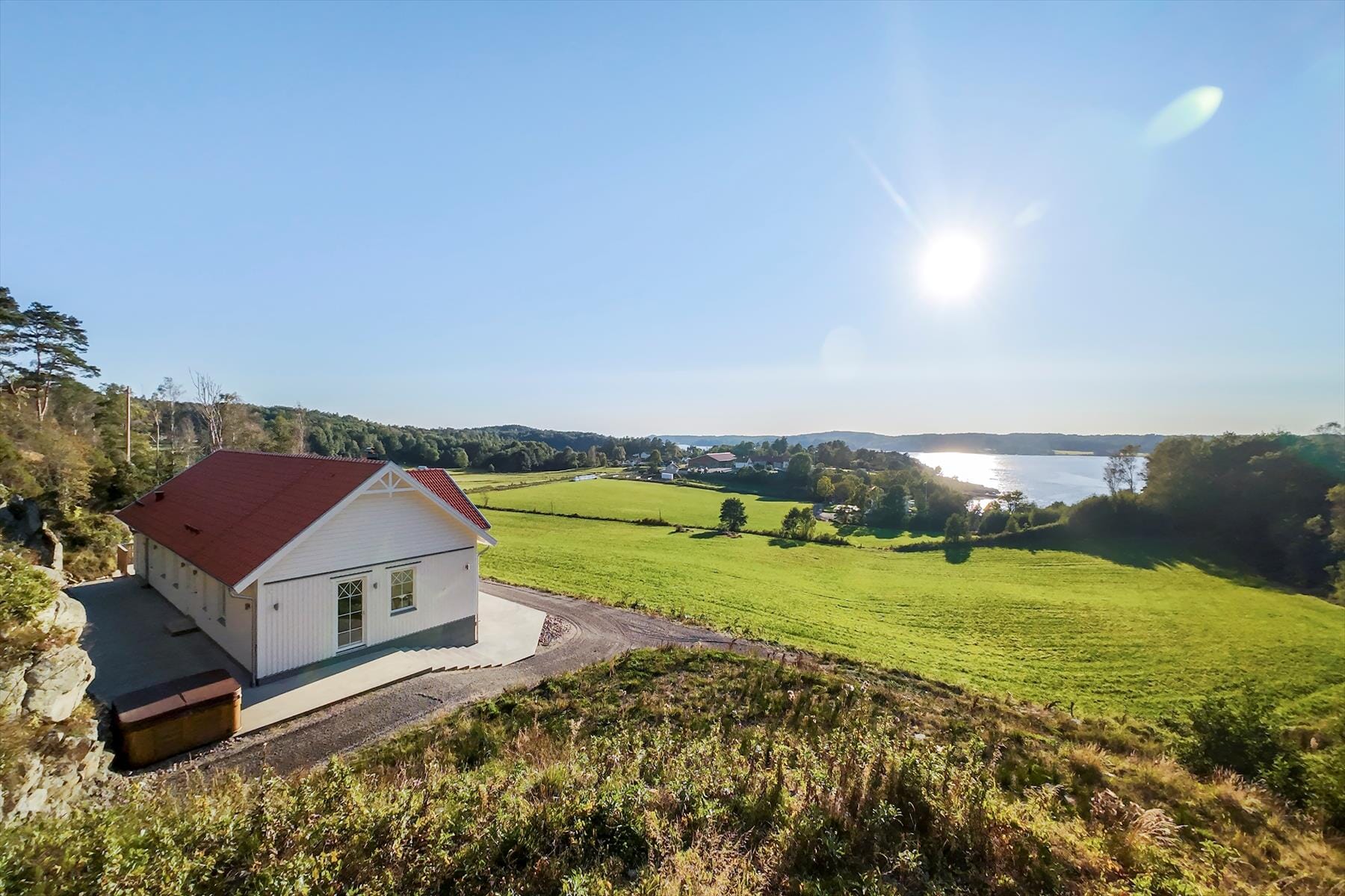 Et moderne feriehus i særklasse, ideelt til ferie med flere generationer eller for par med børn. På Bokenäs, en halvø vest for Uddevalla, midt i det maleriske øhav nord for Göteborg, ligger dette nybyggede, moderne feriehus med en vidunderlig panoramaudsigt over Gulmanfjorden, som ligger blot 400 meter væk. De bedste bademuligheder i området er badebroen ved marinaen i Jordfallsbukten, som ligger knap 2 km væk, Hällebäck, som ligger ca. 4 km væk, og Hafsten Resort, som ligger ca. 13 km væk. Dagligvare kan du købe i Rotviksbro, ca. 8 km væk, hvor der også er en meget god restaurant, Stallgården. Eller lidt længere væk, til Torp indkøbscenter ved Uddevalla-motorvejsafkørslen, ca. 15 km fra huset. Nogle velkendte "perler på vestkysten" i nærheden, såsom Lysekil, Grundsund, Fiskebäckskil eller Islandsberget, tilbyder fremragende muligheder for meget dejlige dagsudflugter.