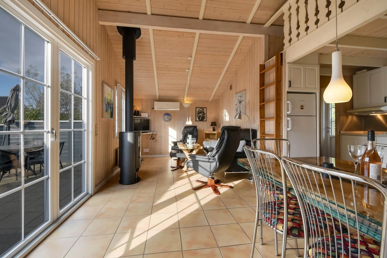 Med sine 50 m2 hører sommerhuset ikke til blandt de allerstørste, men når hver en kvadratmeter er fornuftigt udnyttet som her, er der ikke behov for flere. Indretningen er gennemtænkt, så I kan nemt og bekvemt være fire personer samlet: Det ene soveværelse er indrettet med en dobbeltseng og det andet med to enkeltsenge. Ligesom de andre rum er badeværelset pænt og funktionelt indrettet, og i opholdsrummet med åbent køkken er brændeovnen og de bløde siddemøbler nogle af de detaljer, der skruer op for hyggestemningen.