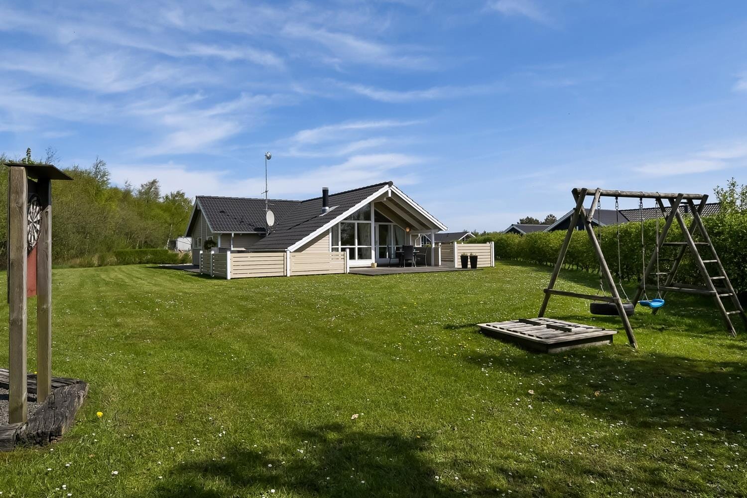 Udenfor venter en have med plads til leg, afslapning og udeliv. Græsplænen indbyder til spil og boldlege, og børnene vil hurtigt finde glæde ved gyngestativet eller en runde dart. De voksne kan slå sig ned på terrassen, nyde en kop kaffe i morgensolen eller forberede aftensmaden på grillen, mens børnene leger i nærheden. Fordi huset ligger i bunden af et lukket vænge, kan du nyde udelivet uden forstyrrelser og med god afskærmning fra naboer. Det giver plads til at lade roen sænke sig og feriestemningen tage over – uanset om dagen står på aktivitet eller afslapning.