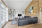 Her I huset balanceres der fint mellem klassisk charme og moderne komfort: Rummene er lyse og luftige med store vinduespartier, mens de rustikke indervægge og andre detaljer i træ er noget af det, der får det til at føles som et vaskeægte sommerhus. Stuens brændeovn bidrager også til den gode stemning, og fra entréen fører en stige op til en hems, der er perfekt som hyggekrog og ekstra soveplads. Badeværelsets hjørnespa gør det til en luksuriøs oplevelse at gå i bad, og i husets åbne køkkenafdeling er der glimrende forhold, når I vil kokkerere. Sommerhusets tre soveværelser er alle indrettede med gode senge og garderobeskabe – og så er der for øvrigt barneseng og barnestol til rådighed for børnefamilier.