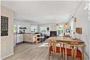 Sommerhuset er opført i 1975 og er renoveret i 2009 med en masse lækre detaljer. De gode opdateringer kan blandt andet ses i opholdsrummets åbne køkken og på badeværelset, og de to soveværelser fremstår ligeledes lyse og velholdte. Samtidig er husets møblement udvalgt, så det er med til at holde fast i en klassisk sommerhusstil, og derfor lever hyggestemningen i bedste velgående inden døre. I opholdsrummet kan I samles nær brændeovnen med varm kakao og brætspil – eller måske en god film på TV’et, som har danske og tyske kanaler samt Chromecast. På en lun forårsdag eller en lys sommeraften er det formentlig mere oplagt at rykke ud i den tilstødende havestue, hvor de store vinduespartier giver jer fri udsigt til den grønne have og lader sollyset strømme ind.