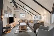 Sommerhuset har en både praktisk og hyggelig indretning, og planløsningen er fornuftigt udformet, så I kan være op til seks personer inden døre. Feriegæsterne kan fordele sig to og to på de tre soveværelser, og på badeværelset kan I både vaske tøj og tage et brusebad, for det er nemlig udstyret med både vaskemaskine og bruseniche. Når det er ved at være spisetid, kan I begynde at finde lækkerier frem i køkkenet, der ligger som en integreret del af stuen. Den åbne forbindelse betyder, at I nemt kan fortsætte hyggesnakken og tage del i det gode selskab, selvom I skal røre i gryderne eller kigge til lasagnen i ny og næ.
