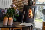 Takket være den gennemtænkte planløsning er det muligt at være otte personer inden døre – for eksempel to familier, hvis både børn og voksne vil have vennerne med på ferie. De fire soveværelser er opdelt, så de ligger to og to, mens gæstetoilettet og det store badeværelse også er godt fordelt i huset. Badeværelset er der, hvor du kan få en tilbagelænet pause i spabadet og saunaen, og når alle skal samles til brætspil, quizaften eller et udsøgt måltid, er det i det dejlige opholdsrum, det foregår. Et veludstyret køkken er integreret med stuen, der byder på en brændeovn nær sofaafdelingen, en hyggelig spiseplads og et stort gavlvindue med havedør ud til terrassen.