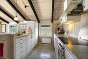 Sommerhusets velholdte rum sørger for, at I får en hyggelig ramme om ferielivet, og så er det selvfølgelig helt op til jer, hvordan det skal foregå: I det store opholdsrum kan I slænge jer i de komfortable siddemøbler, se TV eller tage en velfortjent middagslur i alkoven, og når maven knurrer, kan I fremtrylle lækkerier i det åbne og veludstyrede køkken. Er I til tilbagelænet wellness, kan I også forkæle jer selv med et spabad og en tur i saunaen på badeværelset, der for øvrigt er udstyret med gulvvarme, vaskemaskine og bruser. Sommerhusets seks sengepladser er ligeligt fordelt i de tre soverum, som også byder på godt med skabsplads, hvis I vil pakke feriegarderoben ud.