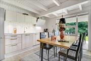 Hus-ID: C11596Du kan se frem til at holde en hyggelig og afslappende ferie på Vester Fælled 51 i Bork Havn. Dette sommerhus har nemlig en lys og venlig atmosfære, endda med brændeovn i køkken-alrummet og en god alkove i stuen. Og når du slikker sol på førstesalens altan, kan du ikke bare se ned på husets grønne baghave, men også nyde synet af Ringkøbing Fjord, der venter 300 meter væk.