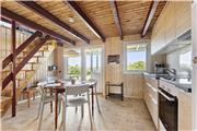 Foruden de smukke kystomgivelser er det værd at fremhæve, at sommerhuset er et charmerende eksemplar med en fornuftig planløsning og en rar atmosfære. 82 m2 er fordelt på to etager med opholdsrum både oppe og nede: I stueplan kan I hygge jer i køkkenet ved spisebordet, og når I vil sidde mere tilbagelænet, kan I rykke op i førstesalens stue, som udover blødere siddemøbler og TV byder på den førnævnte fine fjordudsigt. En alkove er der også her i opholdsrummet, og den kan fungere som supplement til stueetagens to soveværelser. Et badeværelse med gulvvarme hører desuden med til planløsningen, og som noget ganske særligt ligger der en rummelig tilbygning ved siden af entréen, hvor der er god plads til barnevognen, jeres våddragter eller andet grej, I har medbragt på ferien.