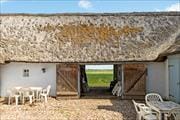 Den stråtækte gård, der måler hele 300 m², på 300 kvm er renoveret med respekt for bygningens historiske stil og kulturarv mv