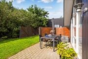 Legefaciliteter finder I også på grunden i form af sandkasse, gynger og trampolin. Baghaven skærmes af hegn og grøn randbeplantning, så det føles dejligt fredeligt og ugeneret at sidde på terrassen – for eksempel når I har dækket op til et lækkert feriemåltid under den blå sommerhimmel.