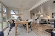 Når du træder ind i dette stemningsfulde sommerhus, bliver du mødt af en lys og indbydende atmosfære. Den hyggelige stue er indrettet med bløde møbler og en brændeovn, der skaber varme og ro på kølige dage. Det åbne køkken gør det nemt at være sammen om madlavningen, og ved spisebordet kan du nyde lange måltider i godt selskab. De tre soveværelser er komfortable og byder på god plads til afslapning efter en oplevelsesrig dag, mens badeværelset har alt, hvad I har brug for. Alt i huset er indrettet, så du straks føler dig hjemme og kan læne dig tilbage og nyde din ferie.