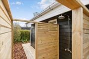 Når solen står højt, lokker den store træterrasse dig udenfor. Her kan du nyde morgenkaffen, mens lyden af bølgerne i det fjerne blander sig med fuglekvidder. Terrassen er perfekt placeret for sol hele dagen, og når aftenduggen falder, kan I trække under overdækningen og tænde lanternerne, mens dagens ferieminder deles over en god middag. Børnene kan boltre sig på den fine, plane græsplæne, hvor der er rig mulighed for leg og sjove konkurrencer. Og skulle I komme hjem fra stranden med sand mellem tæerne – og det er der store chancer for med blot 500 meter til fantastisk badestrand, så er udebruseren en skøn luksus – perfekt til et forfriskende morgenbad eller en hurtig skylning efter dagens strandtur.