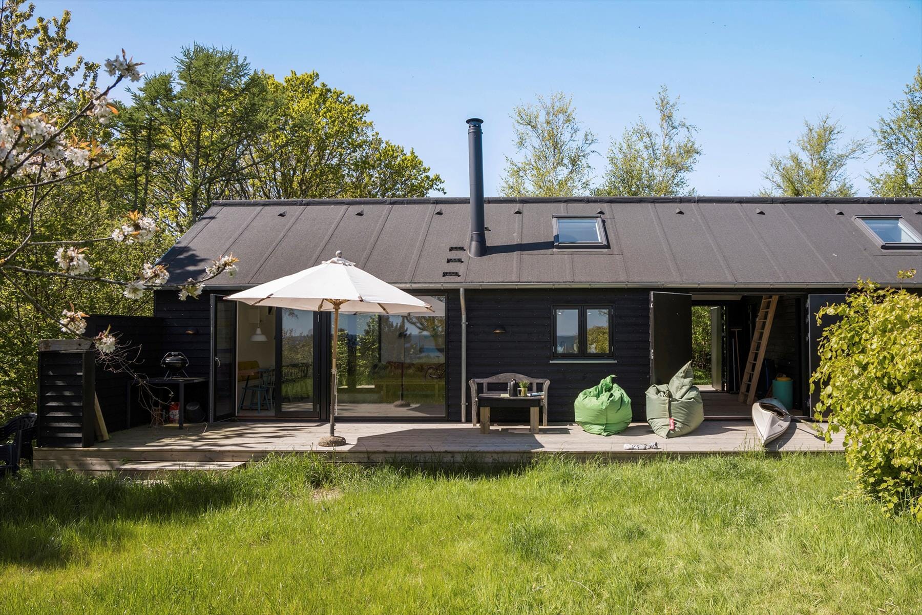 Huset har et charmerende gennemgangsrum, som giver jer mulighed for at åbne op på begge sider af huset og lade naturen smelte sammen med hjemmets hjerte. Det er et fristed, hvor I virkelig kan komme tæt på den omkringliggende natur og nyde det enkle og autentiske i fulde drag.