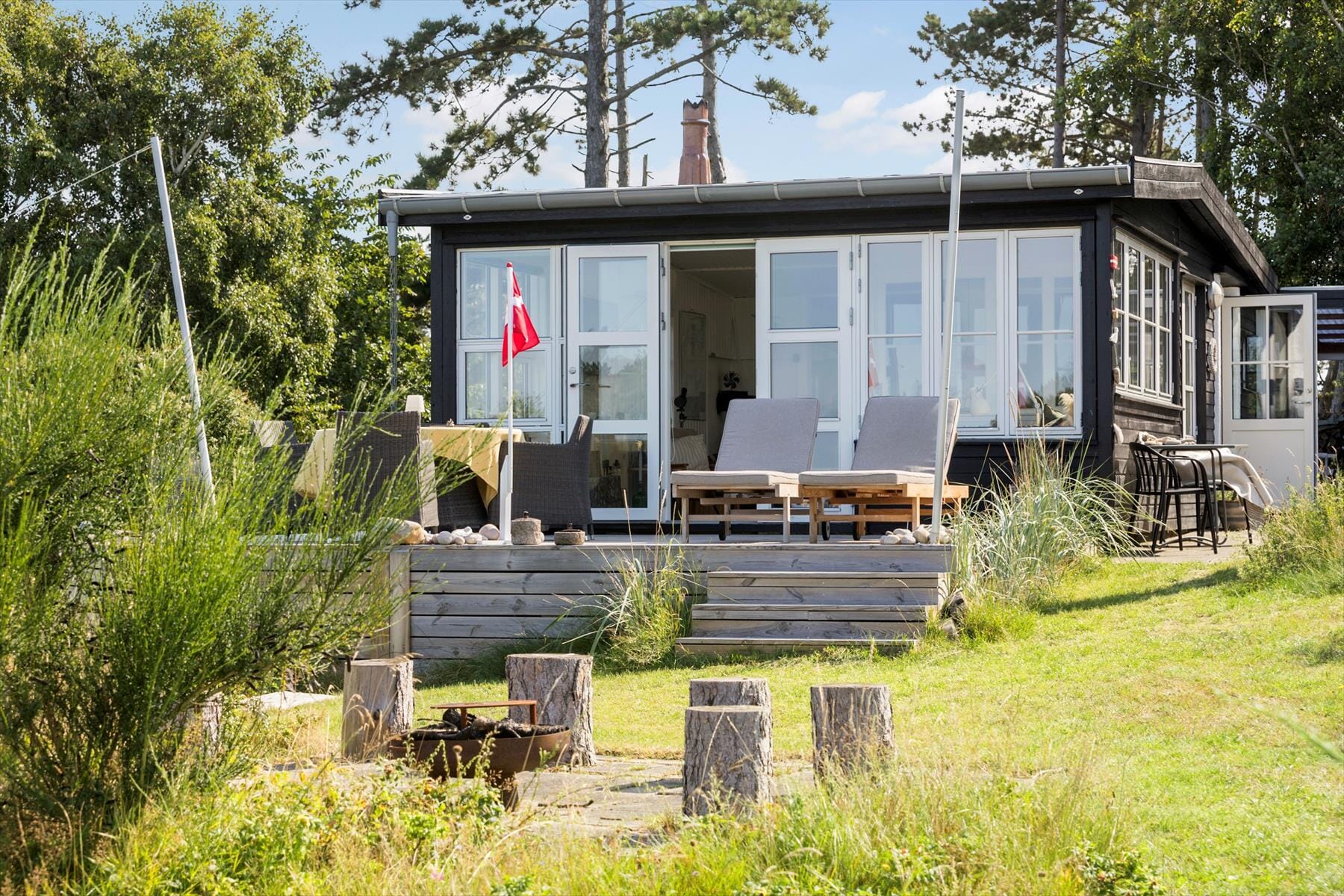 Huset ligger på en dejlig naturgrund med masser af plads og en smuk udsigt over havet. Området omkring huset er indhegnet, så der er mulighed for at slappe af i ro og mag. De skønne terrasser inviterer dig til at nyde både solopgangen og solnedgangen – og hvad er mere afslappende end at sidde med en kop kaffe og lytte til havets brusen? Her er både grill og bålplads til at skabe hyggelige stunder med hele familien. Du vil opleve en ro og stilhed, der lader dig koble helt af fra hverdagens travlhed.