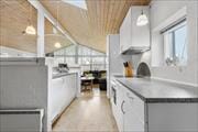 Et lyst og afslappende sommerhus, hvor der er højt til loftet og som er en god base for en ferie i nærværets tegn. Åbent køkken med halvmur til stue og spiseafdeling giver dig mulighed for at have hyggelige samtaler med familien, mens du laver lækker feriemad og nyder et godt glas vin. Du kan også følge med og heppe med dem som spiller bordfodbold i stuen. Når aftenen falder på, er det tid til en god bog eller et spil med børnene alt imens brændeovnen knitrer hyggeligt, Der er gitter til brændeovnen, så de små gæster ikke brænder sig. Fra stuen kan du gå direkte ud på den dejlige terrasse og til den dejlige have. 4 soveværelser - tre med dobbeltsenge og et med 2 enkeltsenge. De sidste sengepladser er på hemsen. 2 dejlige badeværelser - det ene med spa og sauna samt rum med vaskemaskine.