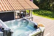 Dejligt sommerhus med spa både ude og inde og kun 550 meter børnevenlig badestrand