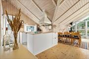 Stue, køkken og spiseafdeling er ét lækkert rum, hvor brændeovnen knitrer i det ene hjørne. Køkkenet har gode faciliteter, så du kan tilberede lækre feriemåltider Stuen er indrettet med komfortable møbler, hvor du rigtig kan slappe af og nyde samværet med familien. Fra stuen er der udgang til herlig terrasse, hvor blandt andet udespaen kan nydes. Badeværelset er lyst og lækkert og har dejlig spa og adgang til sauna. 3 gode soveværelser – To med dobbeltsenge og ét med 2 enkeltsenge. Herudover stort anneks med både dobbeltseng og køjeseng.