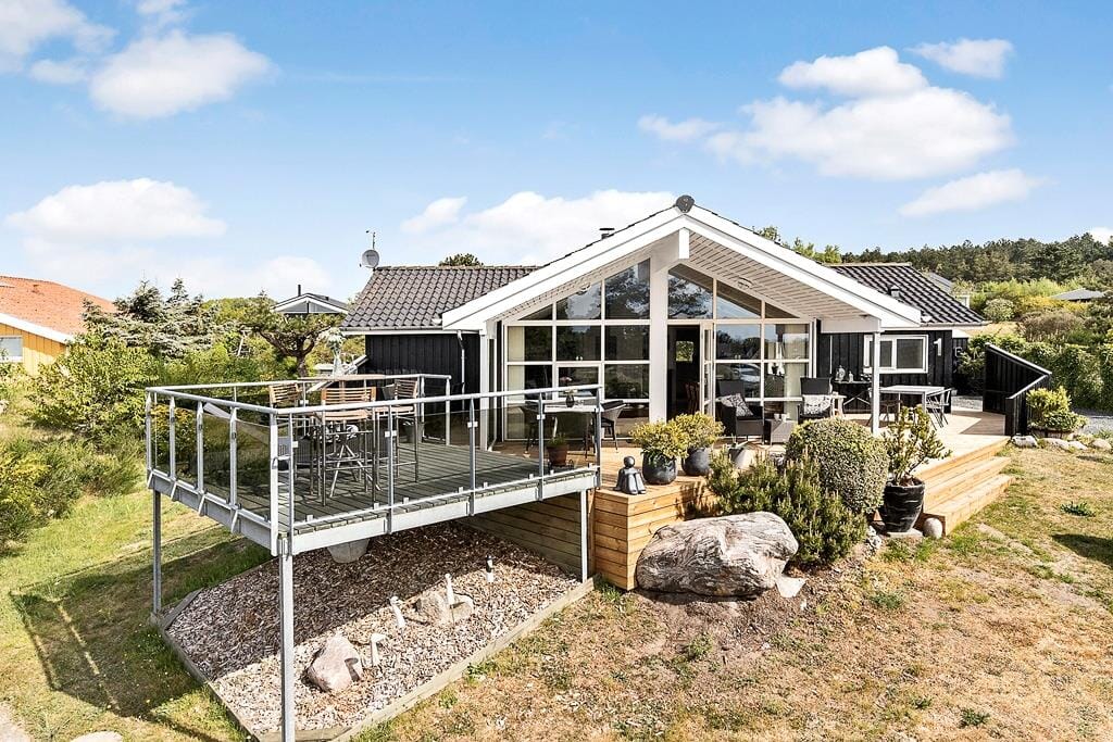 Skønnere rammer for udelivet er svære at finde! Fe­ri­e­hu­set er omgivet af flotte terrasser med gode havemøbler, så du altid kan finde en plads i solen eller skyggen, alt efter hvad du foretrækker. Den store have er et sandt paradis for både små og store feriegæster. Mens børnene gynger eller bygger sandslot­te, kan de voksne slappe af omkring bålpladsen. Når solen går ned, er det tid til at riste snobrød og mars­h­mal­lows, mens I nyder den hyggelige stemning under den funklende stjer­ne­him­mel. På grunden findes der desuden en la­de­stan­der til elbiler.