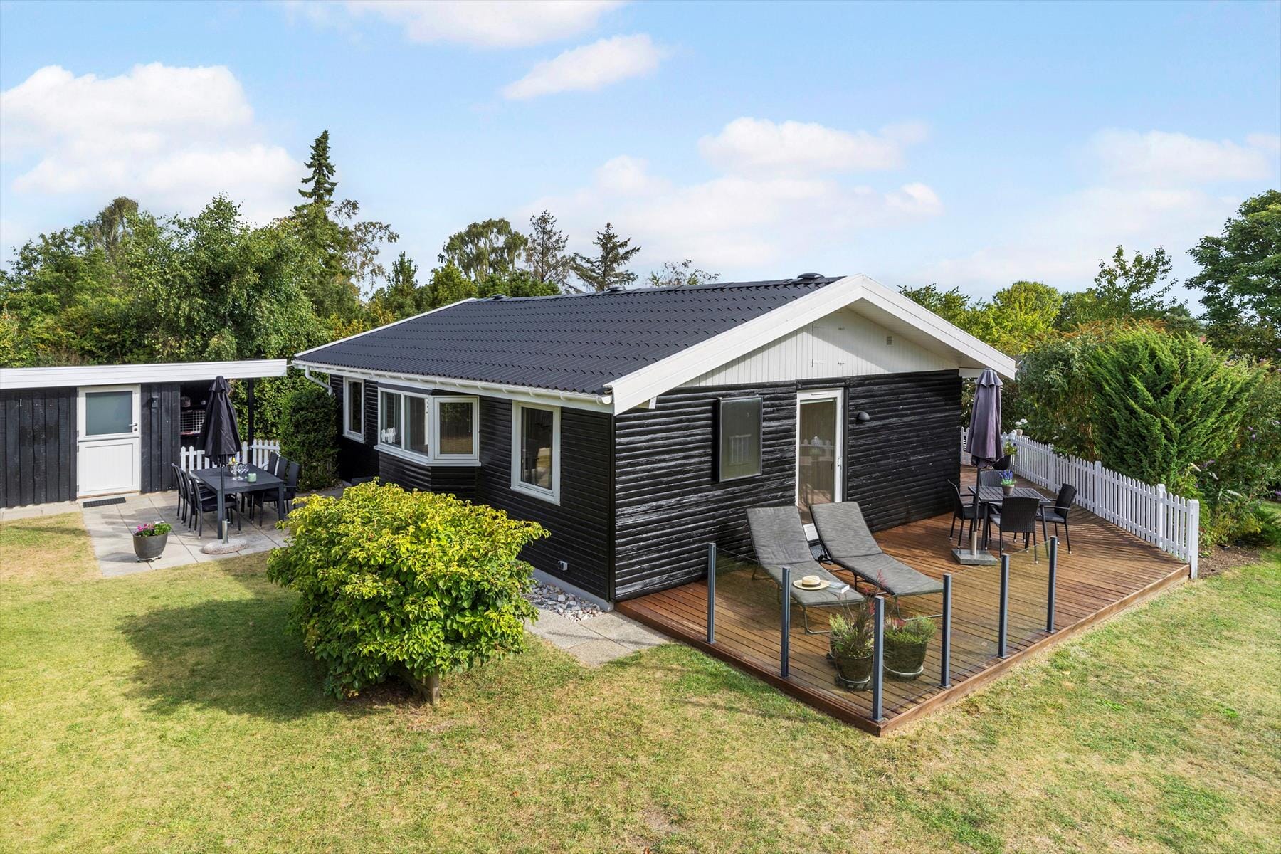 Der er god plads til både afslapning og aktiviteter – både inde og ude. I haven kan man altid finde en hyggelig lækrog, hvor man kan nyde et glas vin eller en kop kaffe, mens fuglene kvidrer, og man kan glæde sig over den grønne og blomstrende have.