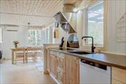Det hyggelige feriehus har en indbydende atmosfære med et nyere, charmerende køkken, hvor madlavning bliver en del af samværet. Her finder I alt, hvad I behøver, inklusiv køleskab med fryser, mikroovn og opvaskemaskine – så opvasken hurtigt kan klares. I vinkelstuen skaber brændeovnen en varm stemning, perfekt til en god bog, et spil eller en lille lur. Skulle sommerdagene blive for varme, sørger varmepumpen med køl for et behageligt indeklima. Huset har desuden et lille, men funktionelt badeværelse med toilet og bruser. Når dagen går på hæld, venter to gode soveværelser – begge med dobbeltsenge – klar til at give jer en god nats søvn.