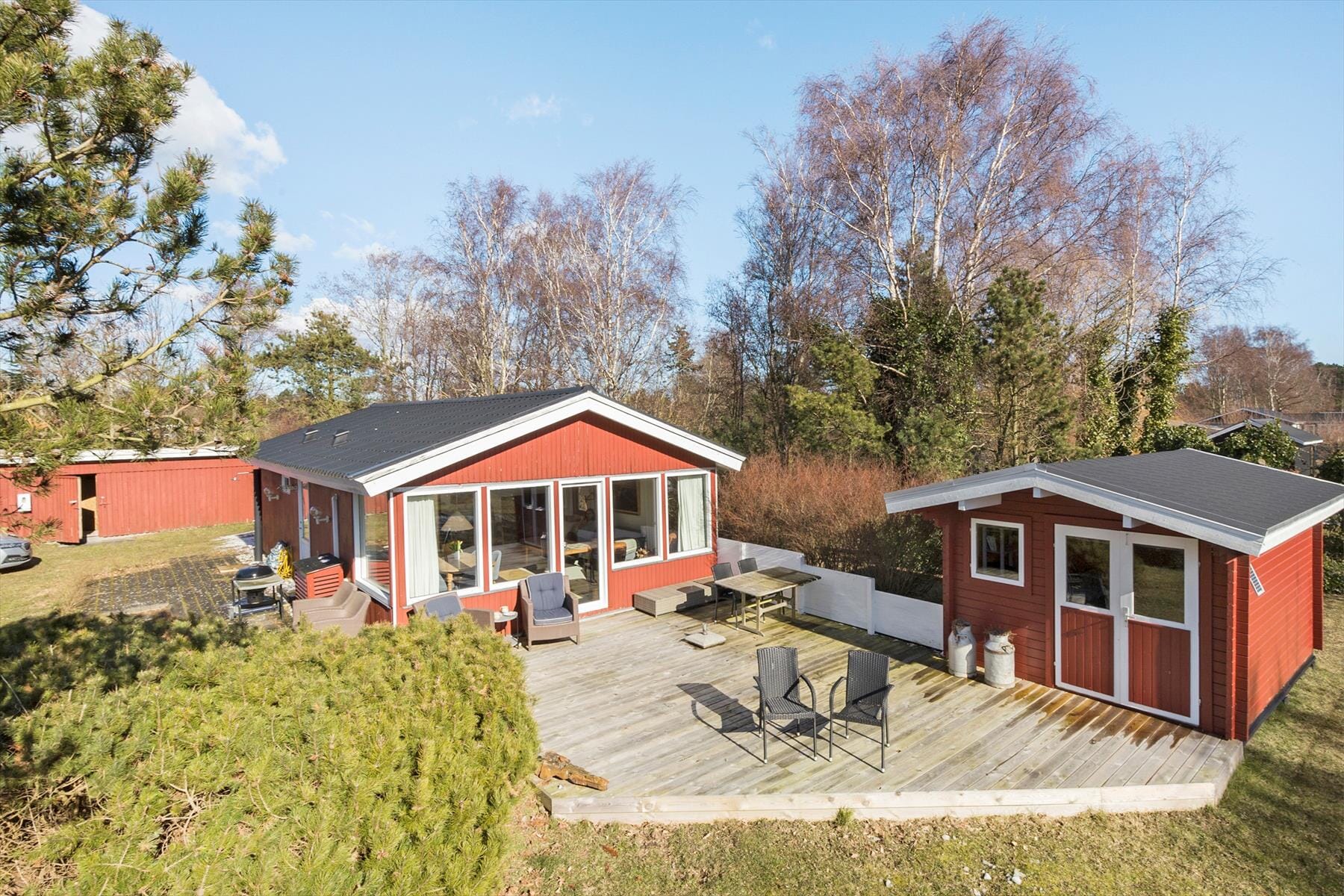 Bare 300 meter til den skønne badestrand ved Kattegat, så en morgendukkert er helt oplagt. Når I kommer hjem fra stranden, kan I vaske sandet af i udebruseren, inden morgenmaden nydes på en af de dejlige terrasser. Den store grund giver masser af plads til boldspil og leg, og fra jeres udendørs oase kan I nyde en flot udsigt til landskabet, hvor det ikke er usædvanligt at se vildt, der nyder den friske morgenluft. I et ugenert og læfyldt hjørne af grunden finder I shelter og bålplads, som indbyder til hyggelige stunder under stjernerne.