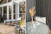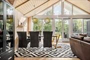 Når du træder ind i dette indbydende feriehus, mødes du af lyse og rummelige omgivelser med en skøn atmosfære. Stuen er hjertet af huset, hvor komfortable møbler, en brændeovn og store vinduer giver dig både hygge og en smuk udsigt til den omgivende natur. Det veludstyrede køkken står klar til at inspirere til fælles madlavning, mens det store spisebord danner rammen om hyggelige måltider. Med flere soveværelser og et badeværelse med bruser er der plads til, at alle kan finde deres egen lille oase.