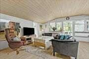 Et dejligt sommerhus med sjæl. Det er tydeligt at ejerne også selv bruger huset og her mangler ikke noget i hverken køkken eller stuen. Du kommer til at bo lækkert med 2 værelser og badeværelse. Hyggelig stue med brændeovn, varmepumpe og udgang til terrasse, hvor du kan sidde og nyde duften af Helgenæs og kigge ud over grunden. Fra stuen er der åben forbindelse til spisekrog og køkkenet – så alle kan deltage, lige meget om der skal spilles spil eller laves mad.
