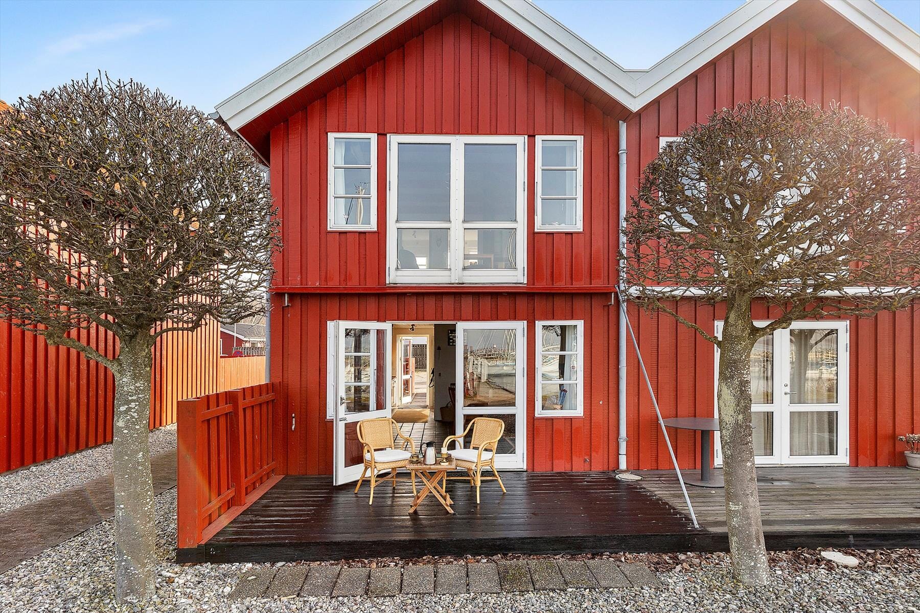 I den hyggelige gårdhave kan du starte dagen i fred og ro med en kop kaffe, mens havnemiljøet langsomt vågner. Her er det let at finde roen og nyde den afslappede feriestemning.