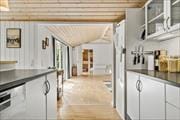 Træd ind i et charmerende sommerhus, hvor hygge og funktionalitet går hånd i hånd. Med 110 m² indbyder huset til afslapning og samvær for op til syv personer. Tre lyse soveværelser og to badeværelser sikrer komfort for hele familien eller vennegruppen. Det åbne køkken og stueområde er ideelt til fælles måltider og hyggelige stunder. Brændeovnen tilføjer ekstra varme og stemning på kølige aftener. Huset er løbende moderniseret og fremstår lyst og velindrettet. En varmepumpe, der både kan køle og varme, gør det let at tilpasse temperaturen selv på varme dage.