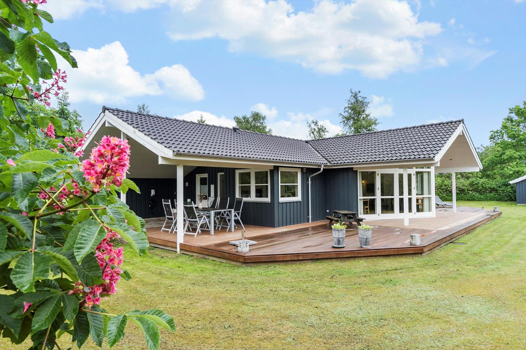 Hus-ID: 8920Velkommen indenfor: Når du træder ind i dette sommerhus, mødes du af en følelse af rummelighed og lys. Huset er kendetegnet ved en fantastisk rumfordeling, der sikrer, at hvert hjørne kan udnyttes optimalt. De høje lofter skaber en luftig atmosfære, og de store vinduer lader solens stråler danse gennem rummene. I husets midtpunkt finder du køkkenet, spisestuen og stuen, som smelter sammen til et hyggeligt samlingssted for familie og venner. Her kan du nyde aftener ved brændeovnen, mens flammerne knitrer og spreder varme eller du kan slappe af til en film eller sport foran det store TV. De fire gode soveværelser sikrer, at alle har deres eget private tilflugtssted og hemsen er perfekt til børnene. To dejlige badeværelser gør morgenrutinerne lette og ubesværede – det ene badeværelse er endda udstyret med både spa og sauna, så du kan forkæle dig selv med lidt ekstra luksus efter en lang feriedag. Som en praktisk detalje er der også et bryggers, der gør det nemt at håndtere små udfordringer som vasketøj og opbevaring af barnevogn, overtøj og sko.