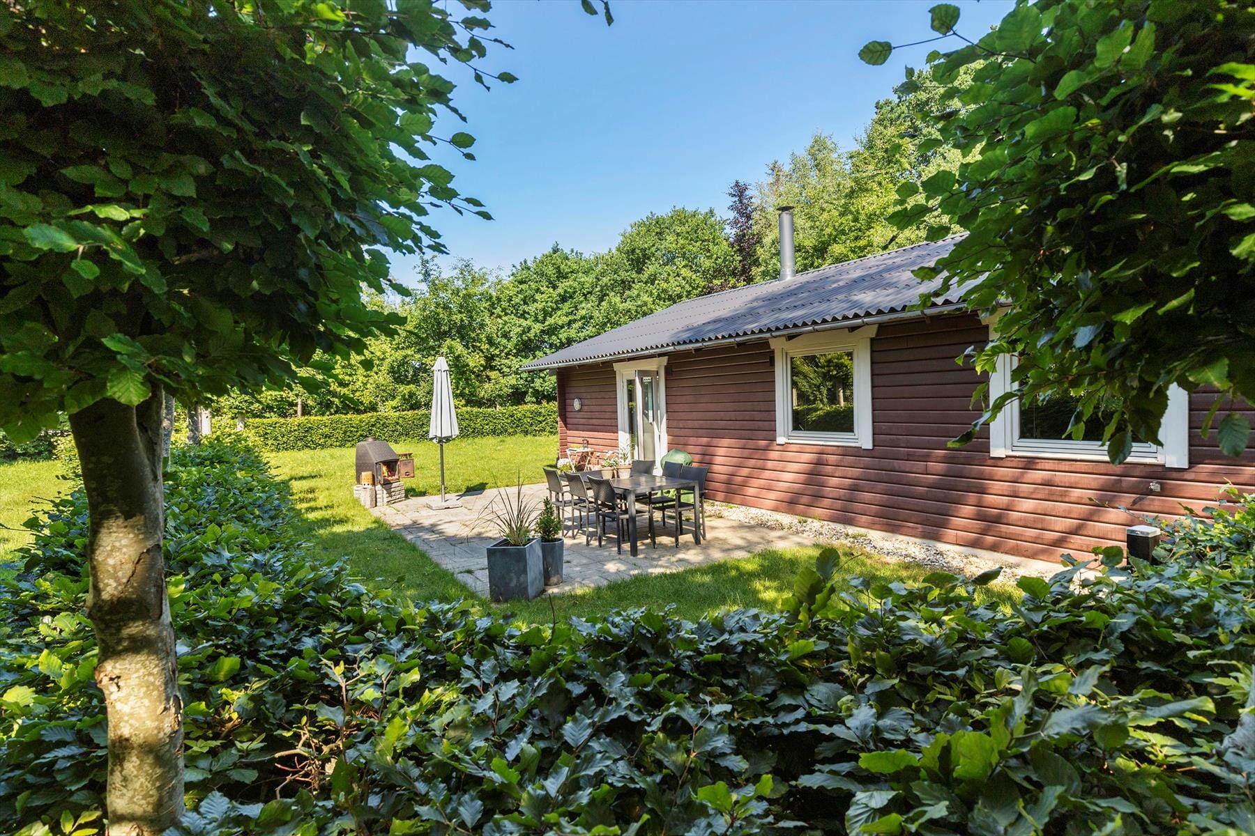 Nyd livet udenfor i den store dejlige have, der er skøn på alle årstider. Her kan I lege i haven og slappe af på terrasserne, der omkranser huset på tre sider, så solen kan følges hele dagen. Nabogrunden ved siden af er ubebygget og forbliver sådan, så der er masser af luft omkring huset. Og som prikken over i’et ligger stranden kun 600 meter væk. Det betyder, at I nemt kan tage børnene og badedyrene med til en dag fyldt med sol, sand og bølgeskvulp. Selvom det ikke er vejr til at bade, så er det skønt at gå friske ture og få "vind i håret". Ja, her er rammerne, der er skabt til en ferie fyldt med hygge, nærvær og masser af frisk luft.