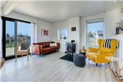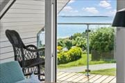 På 1. salen finder du den hyggelige opholdsstue med adgang til en svalegang, hvorfra du kan lade dig betage af udsigten over Ebeltoft Vig. 1. salen er renoveret i 2025 med nyt vinduesparti, som gør udsigten endnu mere fantastisk. Her ligger også husets tredje soveværelse, som er udstyret med en dobbeltseng og en enkeltseng. For de små feriegæster er der både barnestol og barneseng, og hele familien kan holde sig opdateret med husets internet.