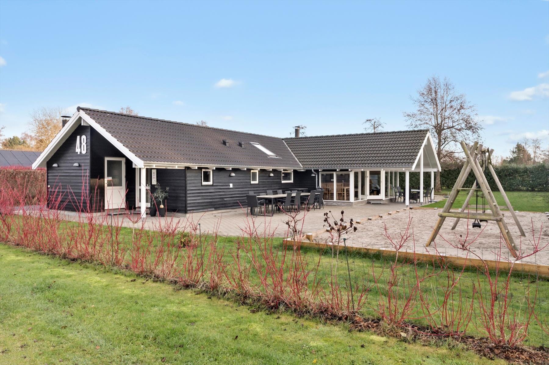 Fritidshuset indeholder: entre, 5 soveværelser: 2 soveværelser med dobbeltseng og 3 soveværelser med enkeltsenge i, samt 4 madrasser på hemsen. Endvidere indeholder fritidshuset 2 badeværelser, hvor det ene er med spa og sauna, køkken-alrum og en stor stue med spiseafdeling og sofaområde, samt aktivitetsrum med billard, bordtennis og dart.