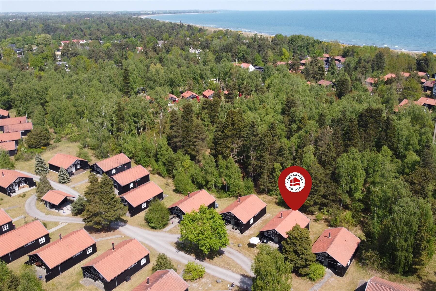 Med en super beliggenhed i 4. række fra vandet, skal der altså hverken krydses nogle veje eller noget for at komme til stranden. Derudover er der kun 300 meter til Lupintorvets købmand, samt et par kilometer til Marielyst centrum.