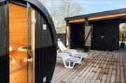 Feriehuset ligger på en 1000 kvm stor grund, med en skøn græsplæne der indbyder til leg og aktivitet. Derudover byder huset på en skøn terrasse, som er delvist overdækket. På terrassen finder man havemøbler og grill.