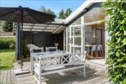 Sommerhuset er beliggende på en 1007 kvm stor grund. Sommerhuset har 2 skønne terrasse, så solen kan nydes hele dagen. På begge terrasser er der havemøbler, derudover er der også grill på den ene terrasse. Udover skønne terrasser har sommerhuset en græsplæne, hvor der er plads til en masse sjov og leg.