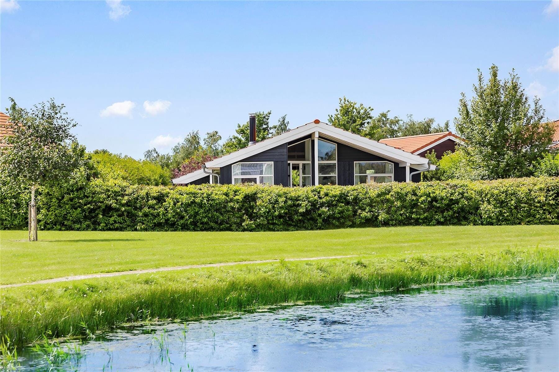 Feriehuset ligger på 370 kvm skøn grund, med mange hyggelige terrasser. Med en central beliggenhed på Marielyst, i dejligt feriehusområde, som byder på både grønne fællesarealer med god plads til boldspil og leg med hele familien, men også små floder, som strækker sig igennem hele området.