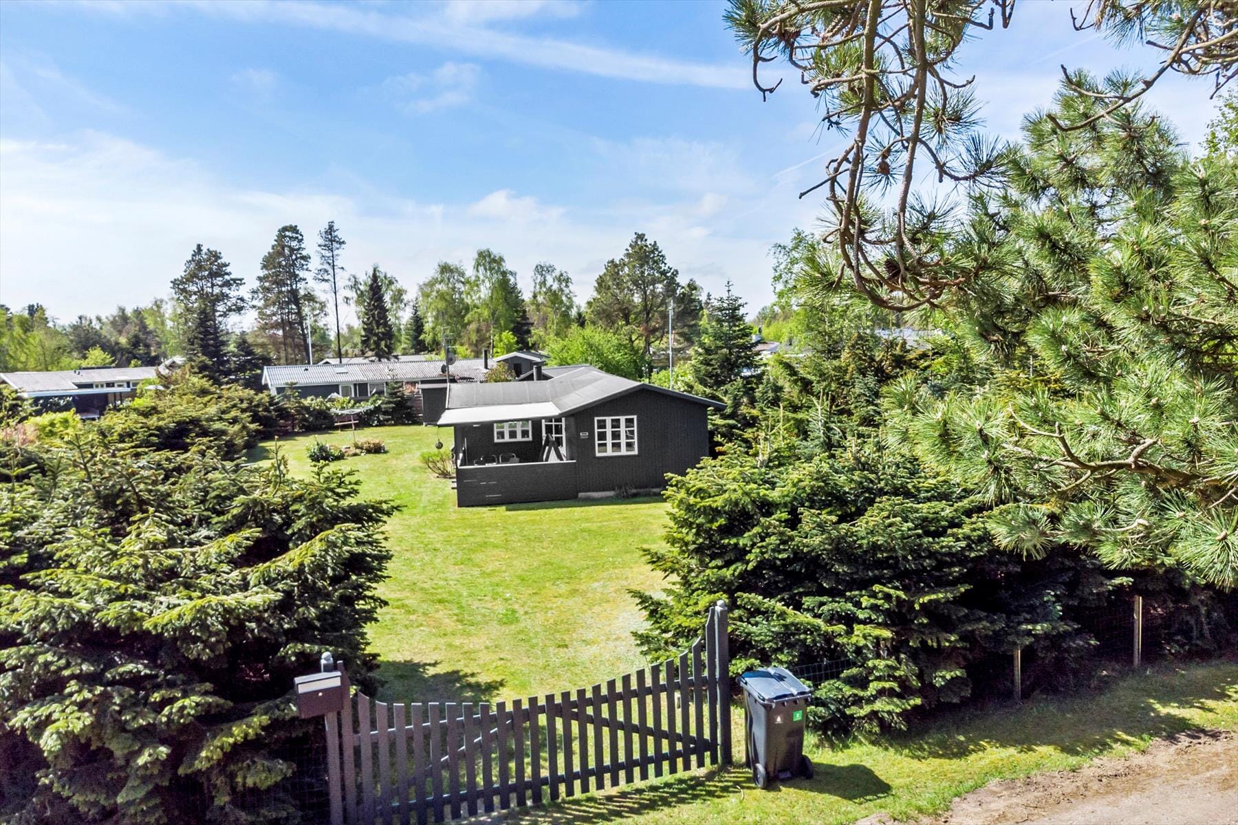 Dette skønne fritidshus ligger kun 350 meter fra vandet. Derudover ligger huset på en 1200 kvm grund. Feriehuset byder på to skønne terrasser, hvor den ene er overdækket. På terrassen er der havemøbler og grill. Grunden er lukket helt af.