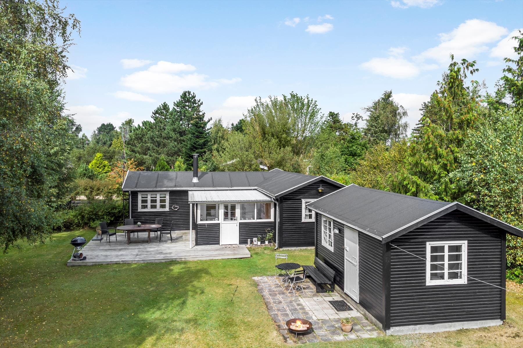 Feriehuset er beliggende på en 1080 m² stor havegrund. Til feriehuset er en skøn terrasse med havemøbler og grill. Derudover er der en stor græsplæne, hvor der er plads til en masse sjov og leg. Der er parkeringsplads ved feriehuset.