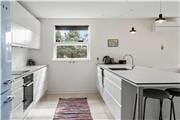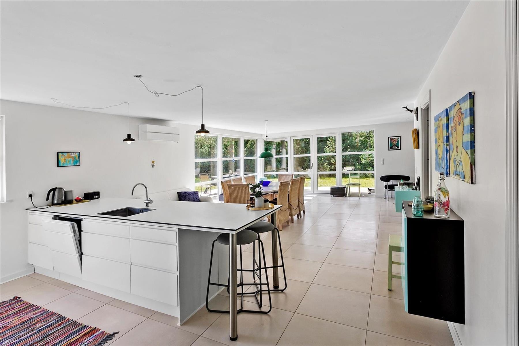 Derudover tilbyder huset et stort og lækkert åbent køkken, som ligger i forbindelse med spiseafdelingen samt opholdsstuen. Alt sammen i en god lys stil og med stort vinduesparti ud mod haven.