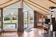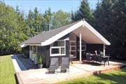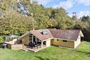Fritidshuset er beliggende på en 1164 m2 stor grund, med masser af plads til aktiviteter på den store græsplæne som er omringet af store buske og træer.