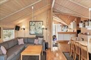 Fritidshuset byder på 4 gode soveværelser, et køkken-alrum, et stort badeværelse med WC, Bruser, sauna og spa, samt stue med spiseområde, sofaafdeling og udgang til en hyggelig delvist overdækket terrasse.